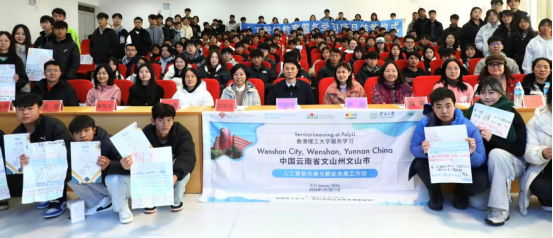 在教育部内地与港澳高等学校师生交流计划(万人计划)及云南大学民族学与社会学学院的大力支持下,2026年1月3日,云南大学与香港理工大学的师生共赴云南文山,开展为期一周的人工智能教育服务学习项目。1月4日上午,师生抵达文山州高级技工学校,校团委书记娄城介绍了学校基本情况,并将两校学生混合编组。同学们相互熟悉后,就未来五天的课程安排进行了初步交流。当天下午,大家前往见山小院体验扎染技艺,沉浸式感受文山的自然风光与人文韵味。